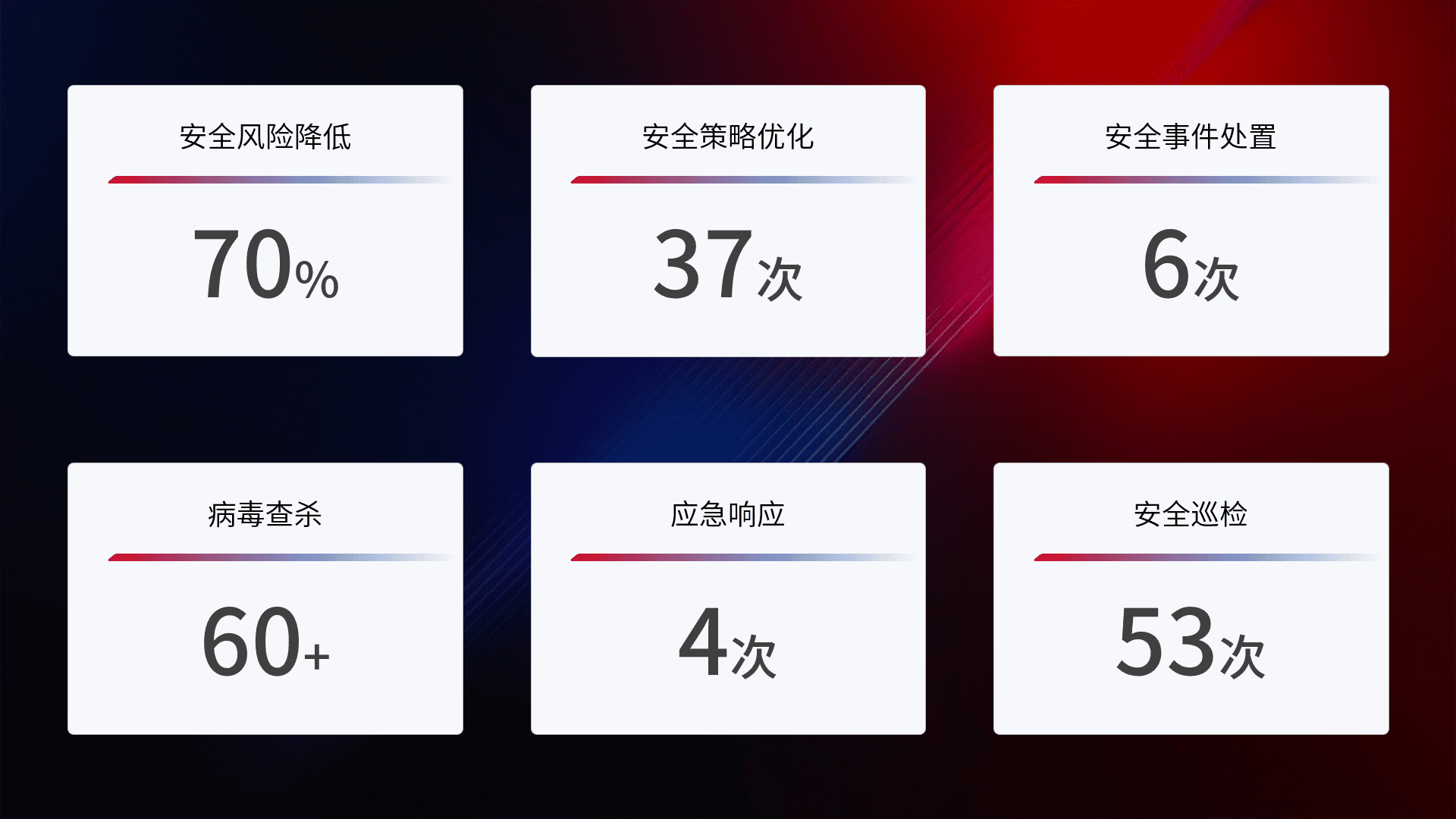 提供全面的安全事件报告体系,,包括处置报告、、、周报、、、季度和年度总结,,,,结合持续监控,,帮助客户深入了解网络安全状况。。。。
